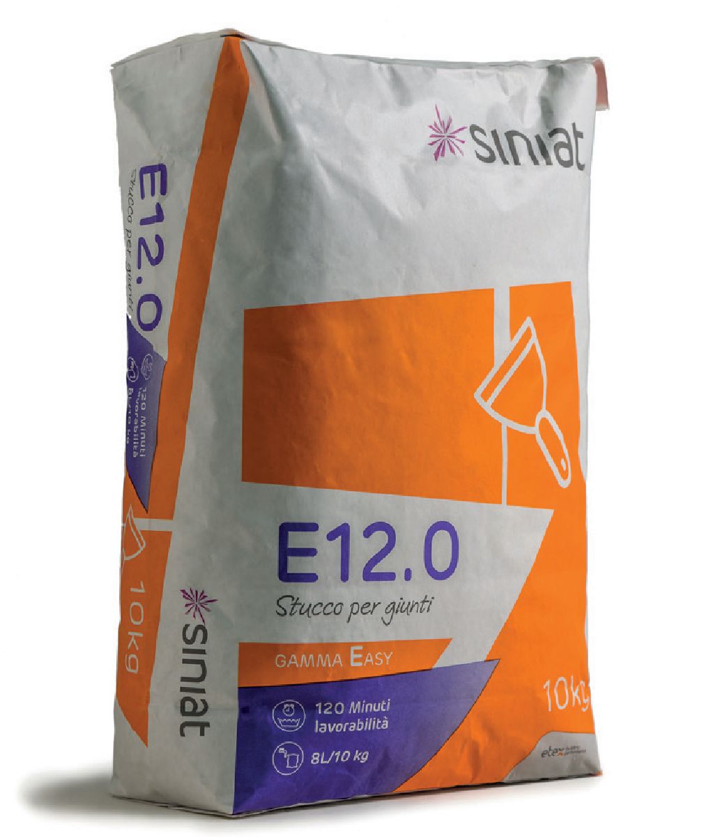 E12.0 è uno stucco in polvere a presa rapida, adatto a cantieri di medio grande dimensioni e climi freddi e temperati, per il riempimento dei giunti con banda di rinforzo e la stuccatura delle viti in ambienti interni. Prodotto rivoluzionario che permette di velocizzare molto la fase di finitura. Ideale per il trattamento dei giunti: lastra-lastra, lastra-strutture esistenti, dissimulazioni di viti. Il nastro in carta microforata è raccomandato. Può essere utilizzato per la rasatura completa delle lastre.