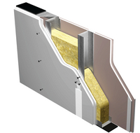 Parete divisoria interna Siniat D125/M75 - 4 PS - LM di spessore 125 mm costituita da un’orditura metallica in lamiera d'acciaio zincato conforme alla norma UNI EN 14195 composta da guide PregyMetal U75/40 e montanti PregyMetal C75/50. Rivestimento su entrambi i lati composto da n.2 strati di lastre pregyplac BA13 di spessore 12,5 mm/cad, marcate CE secondo UNI EN 520 (tipo A). Avvitatura delle lastre all’orditura metallica con viti SNT conformi alla norma UNI EN 14566. Pannello isolante di lana minerale conforme alla norma UNI EN 13162 di spessore min. 60 mm posto in intercapedine. Nastro mono/biadesivo di polietilene espanso a celle chiuse applicato dietro le guide e i montanti di testa. Trattamento dei giunti e delle teste delle viti con nastro di armatura e stucco Siniat conforme alla norma UNI EN 13963.